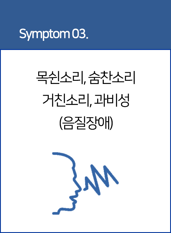 À½¼ºÀå¾Ö´Â ÁÖ·Î ¸ñ¼Ò¸®¸¦ ¸¸µé¾î³»´Â ±â°üÀÎ ¼º´ëÀÇ ÀÌ»óÀ¸·Î ½® ¸ñ¼Ò¸®³ª ŹÇÑ ¸ñ¼Ò¸®°¡ ³ª´Â °æ¿ì°¡ ´ëºÎºÐÀÌ°í ±× À̿ܿ¡ Äڸ͸ÍÀÌ ¼Ò¸®°¡ ³ª´Â °ø¸í Àå¾Ö, ¸»¼Ò¸®°¡ ²÷°Ü ³ª¿À°Å³ª ½ÉÇÏ°Ô ¶³·Á ³ª¿À´Â °æ·Ã¼º ¹ß¼ºÀå¾Ö µîÀÌ ÀÖ½À´Ï´Ù.